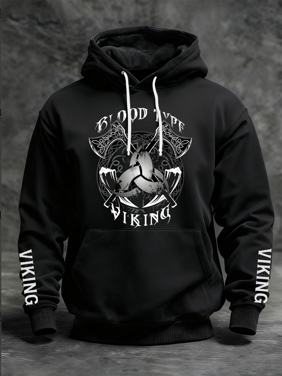Pánské viking tištěné dlouhé rukávy s kapucnou mikina