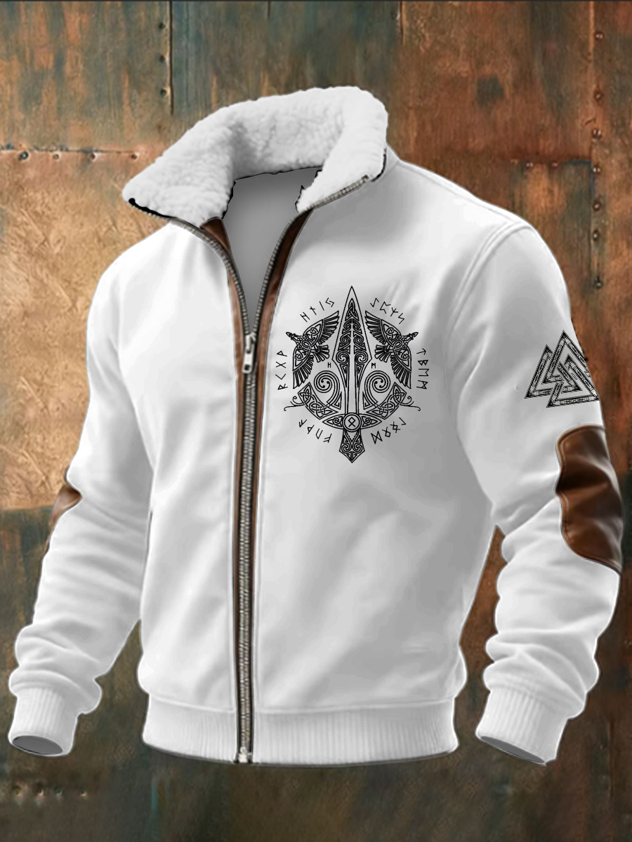 Pánské viking vytištěné dlouhé rukávy stand up golier jehňata zips top