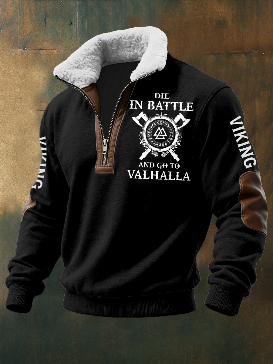 Pánské viking vytištěné dlouhé rukávy stand up golier jehňata zips top