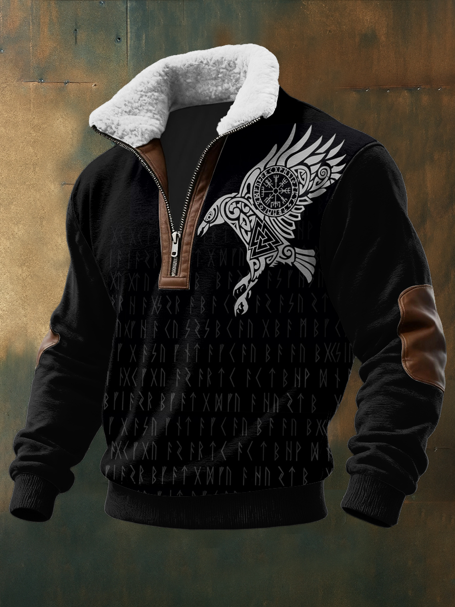 Pánské viking vytištěné dlouhé rukávy stand up golier jehňata zips top