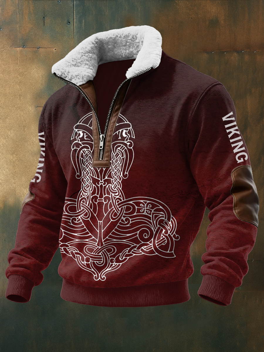 Pánské viking vytištěné dlouhé rukávy stand up golier jehňata zips top