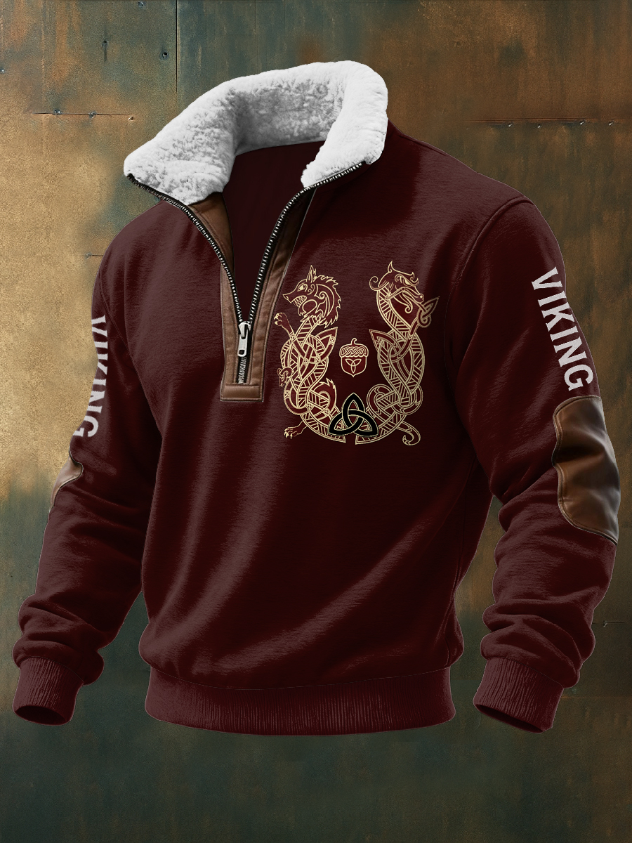 Pánské viking vytištěné dlouhé rukávy stand up golier jehňata zips top