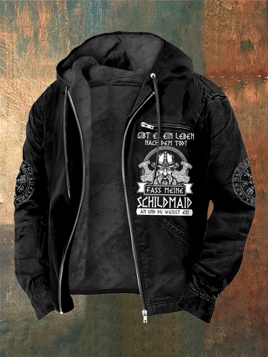 Pánské viking vytištěné s dlouhými rukávy s kapucnou bundou