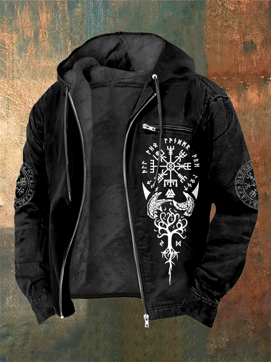 Pánské viking vytištěné s dlouhými rukávy s kapucnou bundou