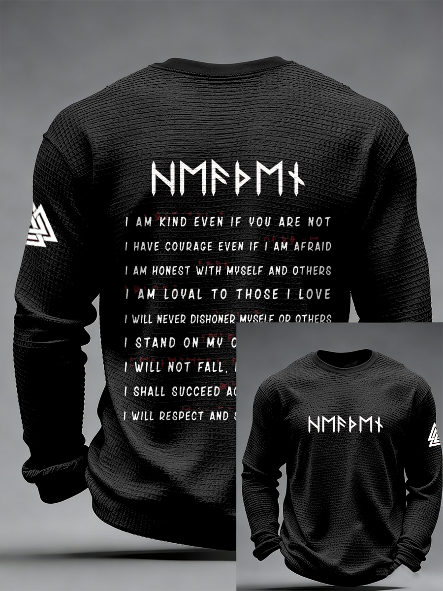 Pánské viking vytištěné vafle dlouhé rukávy s kulatým krkem mikina