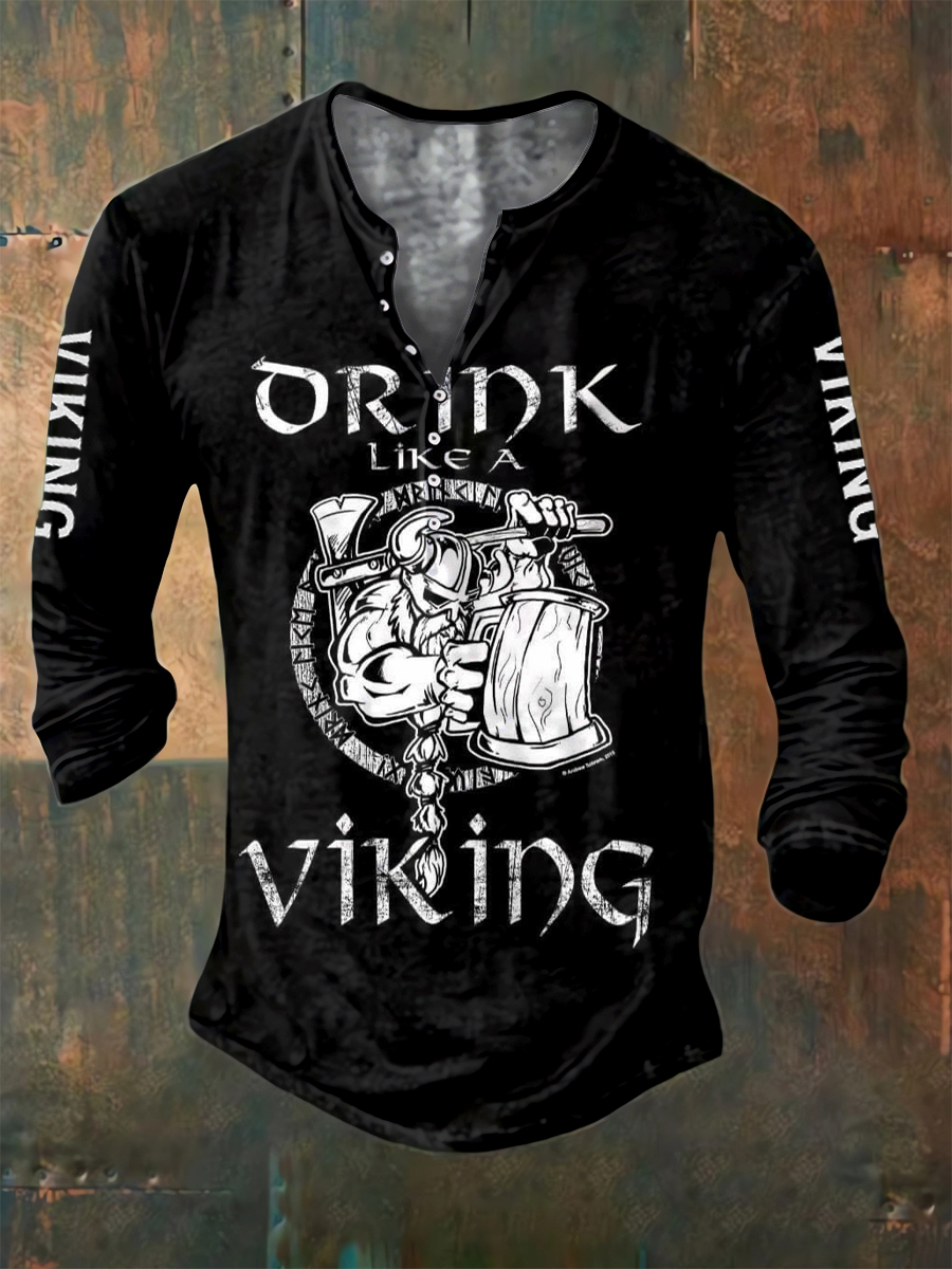 Pánské vikingské tlačítko s dlouhým rukávem henley tričko