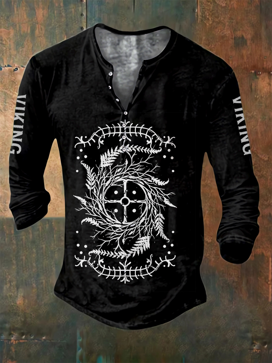 Pánské vikingské tlačítko s dlouhým rukávem henley tričko