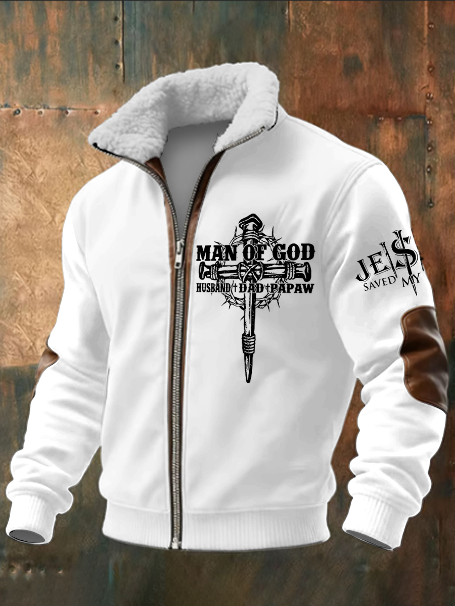 Pánské víra vytištěné dlouhé rukávy stand up golier jehňata zips top