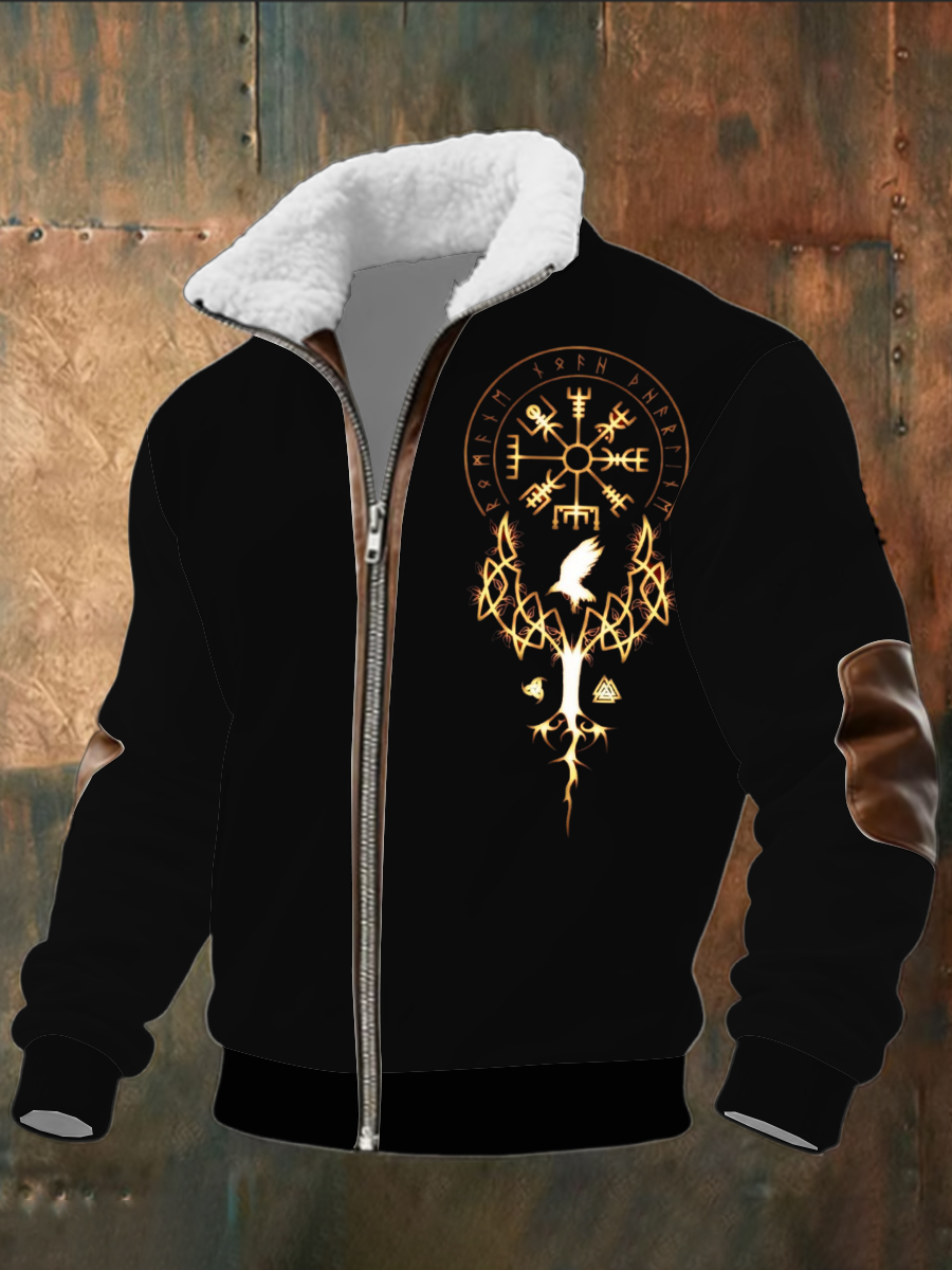 Pánské žhavé yggdrasil strom tisk sherpalemovaný zip bunda