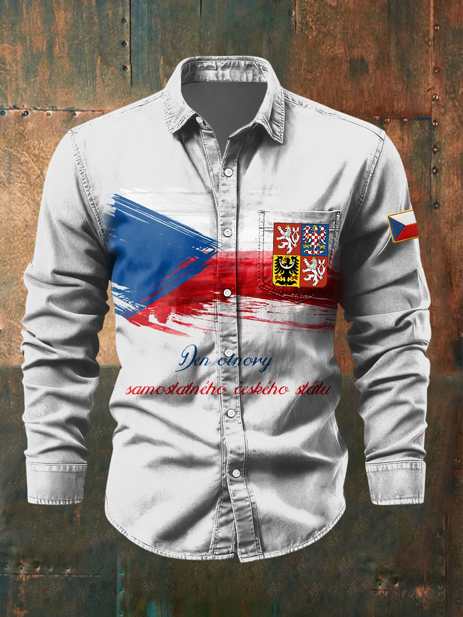 Retro abstraktní inkoustumyté vlajky emblem casual košile
