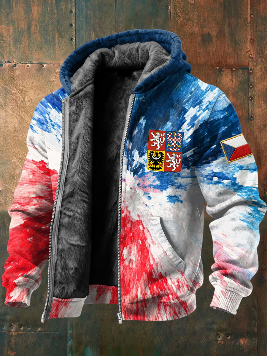 Retro barvazablokovaná česká embléma fleecelemované kabát s kapucinou