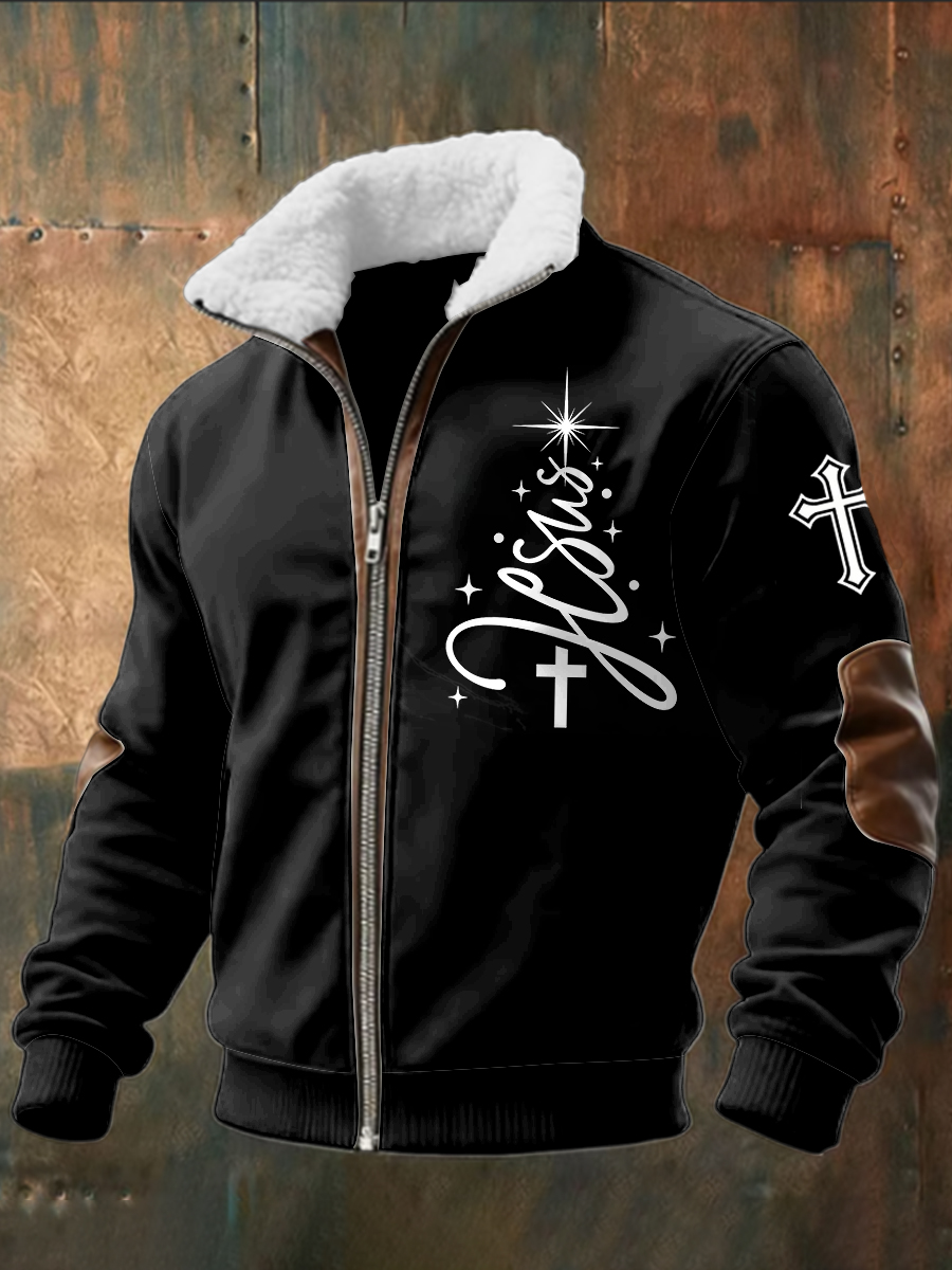 Retro ježíština vánoční jehňata patchwork zips bunda