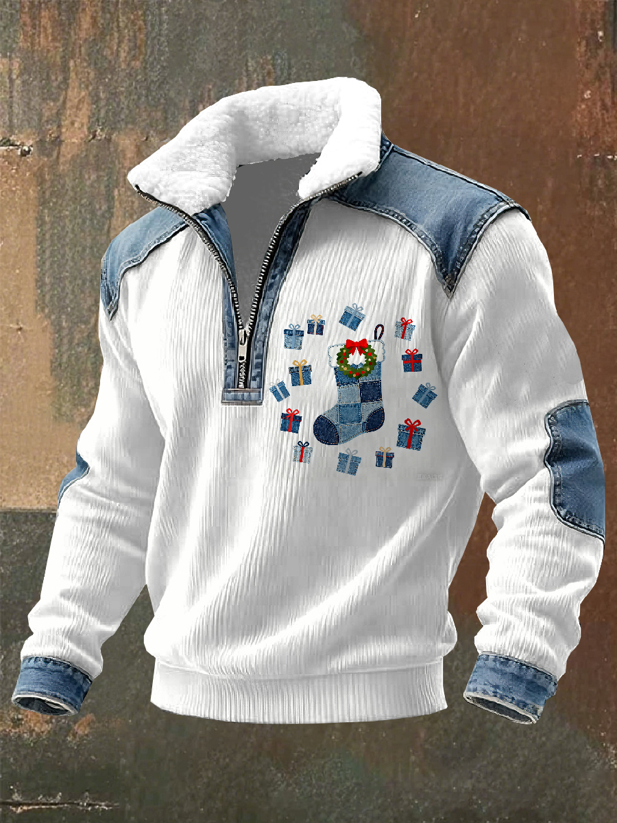 Vintage vánoční umění vytištěné dlouhý rukáv mikina