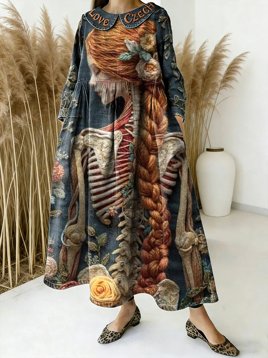 Ženy milují kreativní tisk šaty s dlouhým rukávem