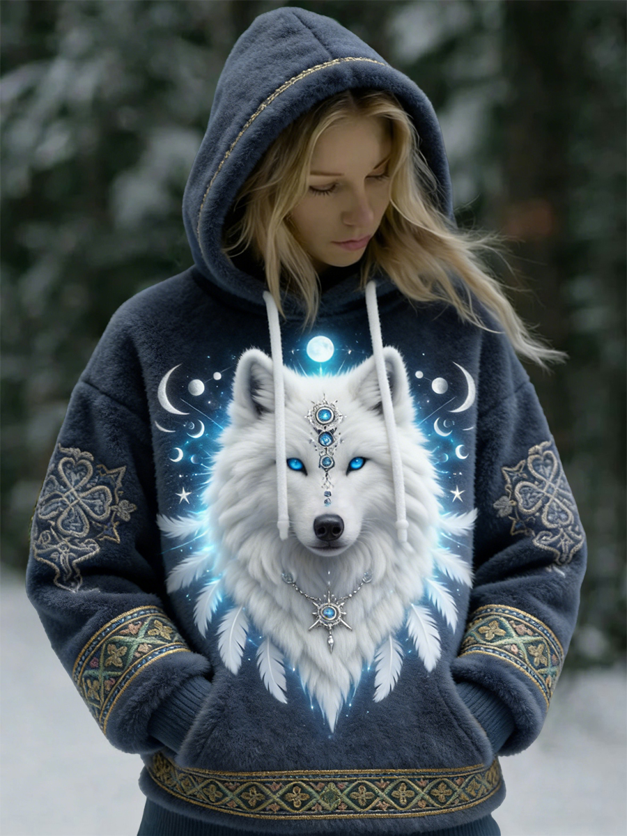 Ženy vintage viking vlk totem casual flanel hoodie